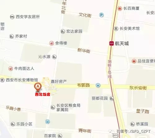高鐵—飯店:地鐵2號線直通北客站,從高鐵(西安北客站)出口乘坐地鐵2號線到航天城站B出口,向西500米到達(dá)飯店。