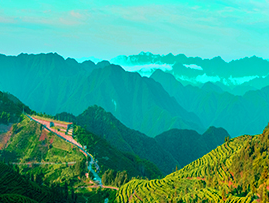 山綠水清,云白天藍